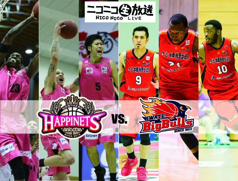株式会社ドワンゴ及び株式会社ニワンゴが運営している「niconico」の「ニコニコ生放送」にて4月18日(土)18時に開催される秋田ノーザンハピネッツvs.岩手ビッグブルズの試合を生中継(無料)します。