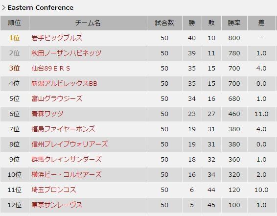 首位争いはイースタンでは1位・岩手と2位・秋田、ウェスタンでは1位・京都と2位・沖縄が争っています。どちらも差は1ゲームと週末の試合での逆転の可能があります。