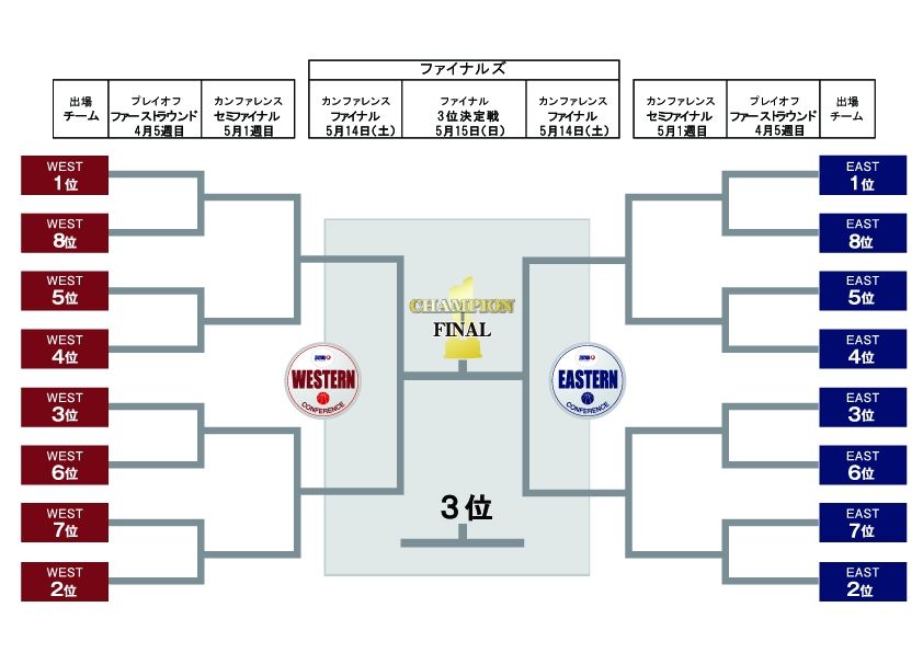 bjリーグでは、2015-2016シーズンのプレイオフ形式が以下の通り決定しましたのでお知らせいたします。イースタン・カンファレンス、ウェスタン・カンファレンス共に上位8チームがプレイオフ進出となります。